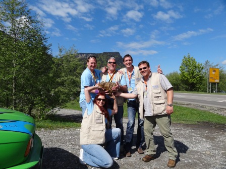 Das Team arbeitet flott. Beim Verzehr der Schnitzel auf dem Oberjochpass treffen wir Team 21.